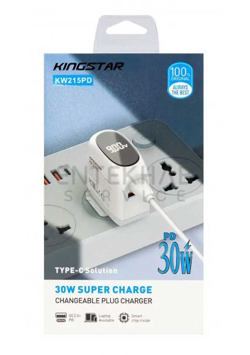 شارژر KINGSTAR فست شارژ 30 وات مدل KW215PD به همراه کابل TYPE-C